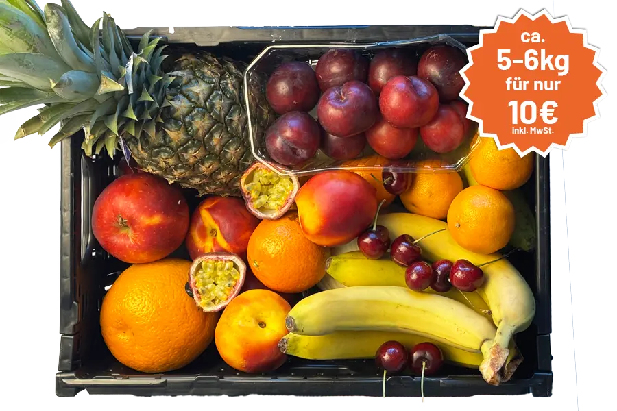 Da wir Lebensmittel vor der Verschwendung retten und die Verfügbarkeit dieser stark variiert, kann sich die Zusammensetzung der Boxen unterscheiden. Deshalb kann es vorkommen, dass der tatsächliche Inhalt Deiner RetterBox von den Inhalten in der Liste abweicht. Wir bemühen uns jedoch stets, Euch eine ausgewogene und wertvolle Auswahl zu bieten.