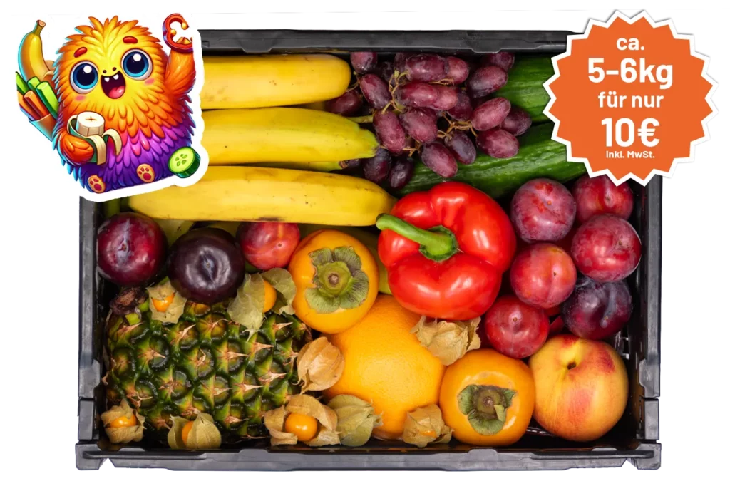 Das Obst & Gemüse, welches aufgrund von Überproduktion weggeworfen werden müsste, wird durch deinen Kauf gerettet.
