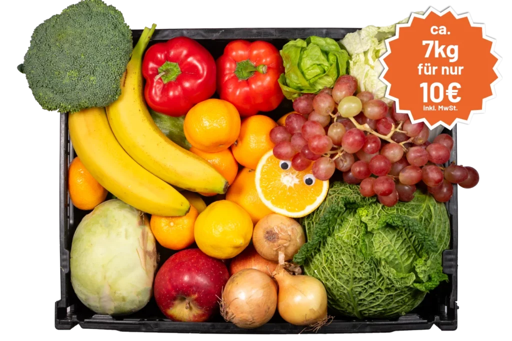 Da wir Lebensmittel vor der Verschwendung retten und die Verfügbarkeit dieser stark variiert, kann sich die Zusammensetzung der Boxen unterscheiden. Deshalb kann es vorkommen, dass der tatsächliche Inhalt Deiner RetterBox von den Inhalten in der Liste abweicht. Wir bemühen uns jedoch stets, Euch eine ausgewogene und wertvolle Auswahl zu bieten.
