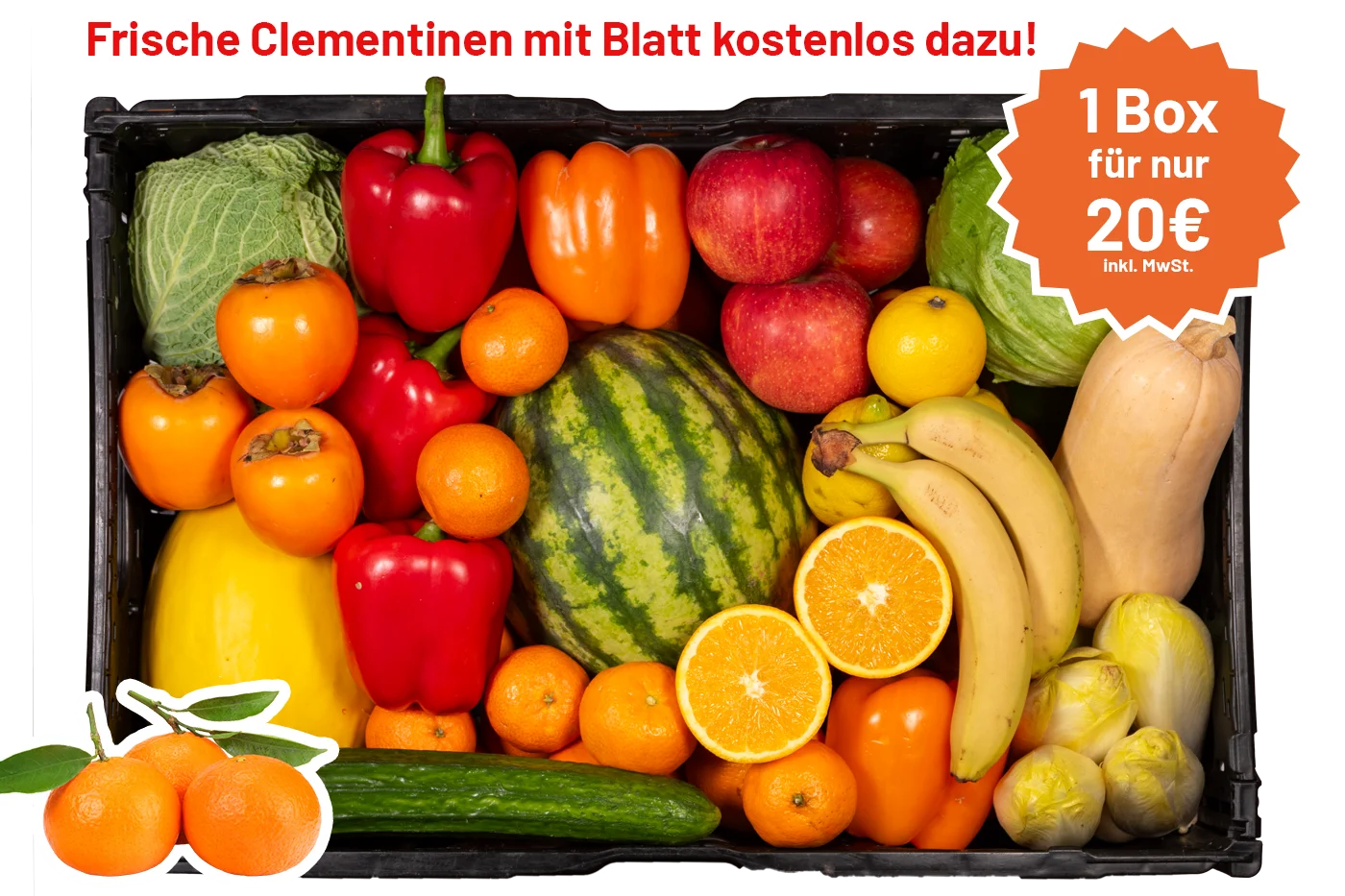 Mischung von EU- und Nicht-EU-Obst und -Gemüse. Die Artikel sind ausschließlich zur Verarbeitung bestimmt und entsprechen nicht mehr den angegebenen Güteklassen. Die Ware ist vor der Weiterverarbeitung vom Käufer selbst zu kontrollieren.